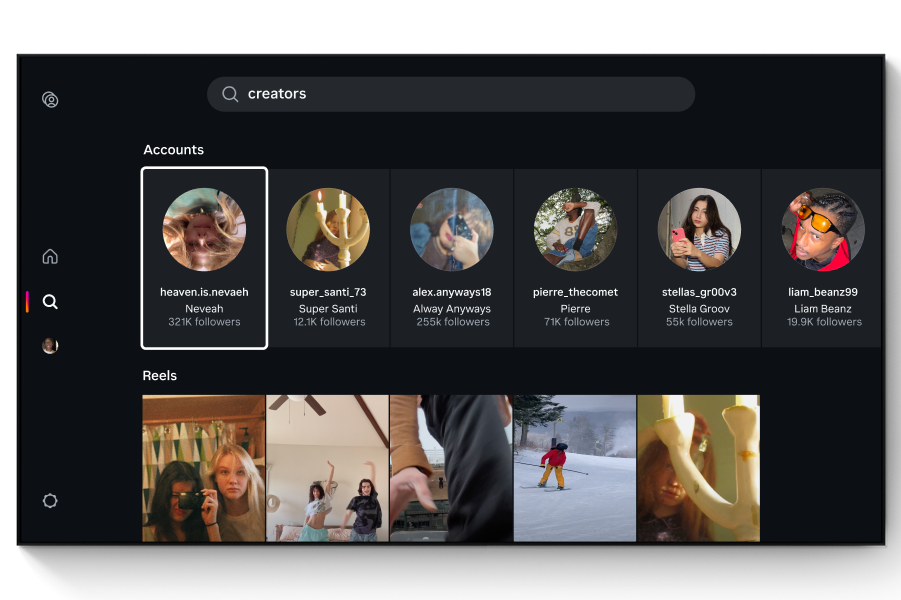 On TV, Instagram doesn’t feel like endless scrolling. Reels are arranged into channels, music, travel, sports, trending content and they play automatically. You lean back instead of swiping. Families can add up to five profiles on one device, so recommendations stay personal even on a shared screen. It’s closer to how we consume YouTube than how we’ve used Instagram so far.
