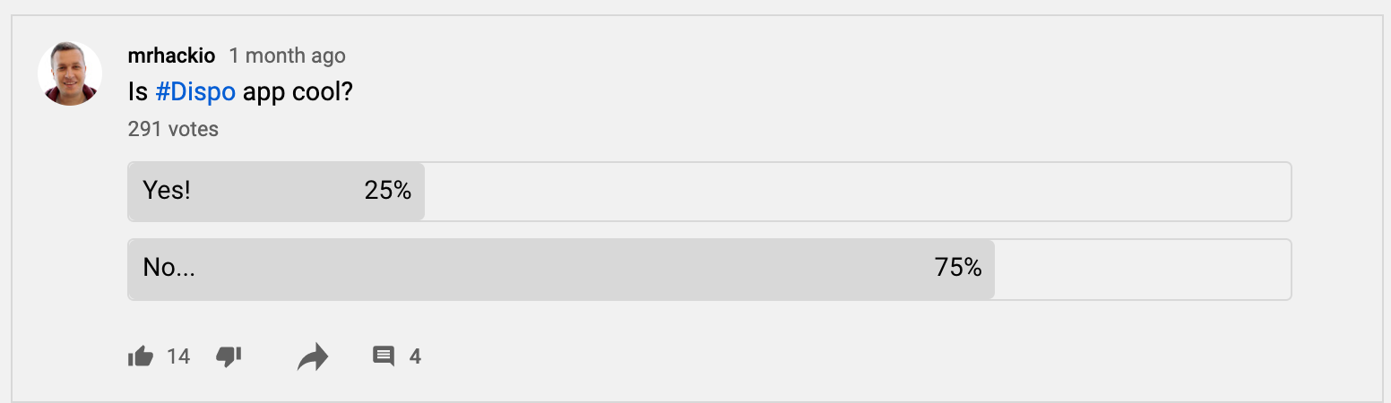 Post a poll to get more insight into what your subscribers want to see from you. For example, give your subscribers a few video ideas to choose from and use the most popular idea for your next video. Ask your subscribers which days they prefer uploads or which recent video they most enjoyed. Connect with them by asking how their day is or other questions to personally get to know them because this will build a loyal fan base who regularly engages.